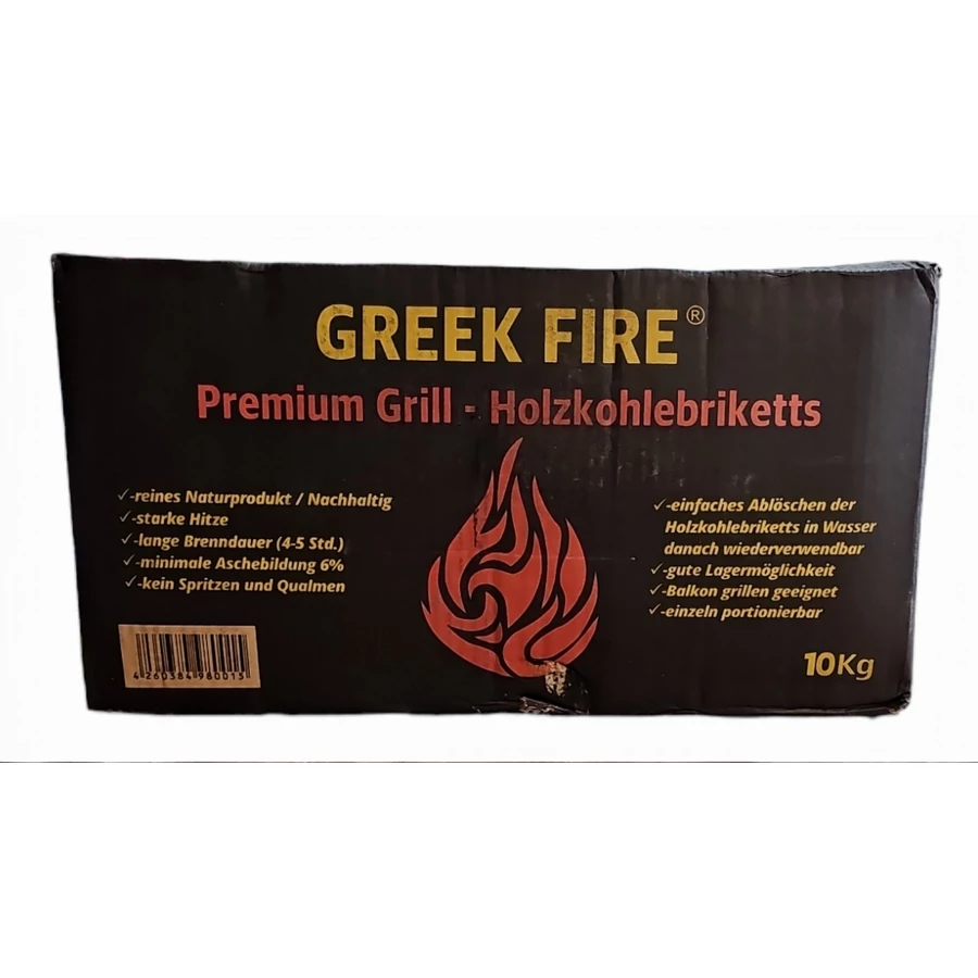 A GREEK FIRE brikettet 100%-ban természetes termék, kötőanyag felhasználása nélkül készül. Nem füstöl és szagtalan, ezért erkélyen való grillezésre is alkalmas.