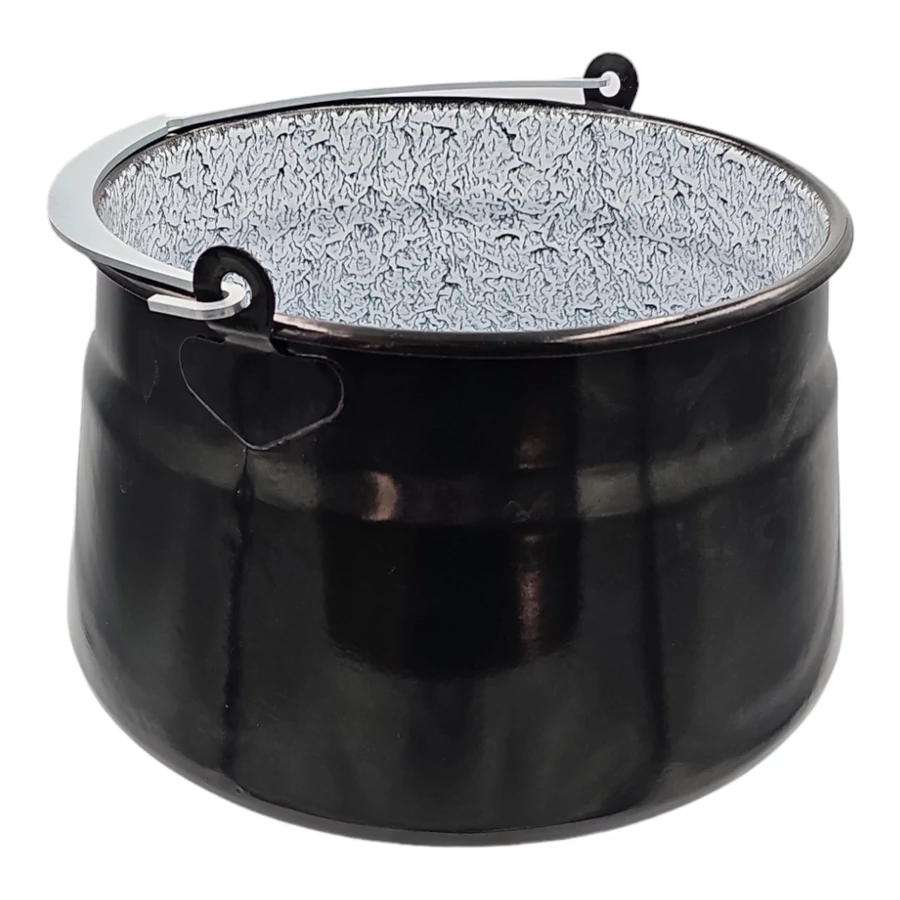 A speciális zománcbevonat nemcsak esztétikus megjelenést biztosít, hanem praktikus is: könnyen tisztítható és ellenáll a korróziónak. Az edény tartós kivitelezése garantálja, hogy éveken át hűséges társad lesz a szabadtéri főzések során.